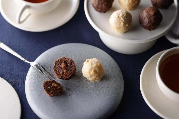 『長崎カステリーヌ』のテリーヌとカステラ生地をコロンっと小さなケーキに成形し、プレーンにはあんず、ショコラにはいちじくの香り豊かなドライフルーツを閉じ込めて味のアクセントに。コク深いチョコレートでコーティングし、果実とショコラの風味豊かな2種のひと口ケーキに仕上げました。