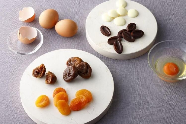 原材料名 【プレーン】卵(長崎県産)、クリームチーズ、ホワイトチョコレート、バター、砂糖、小麦粉、水飴、あんず、サブレフレーク/トレハロース(一部に卵・小麦・乳成分・大豆を含む)